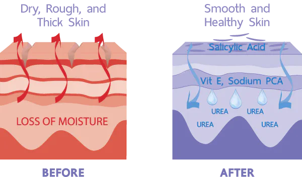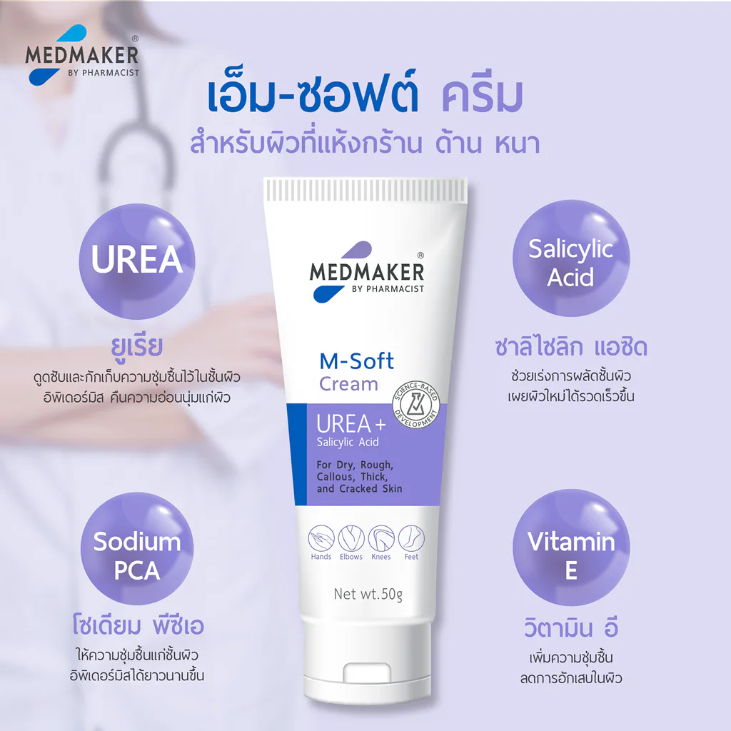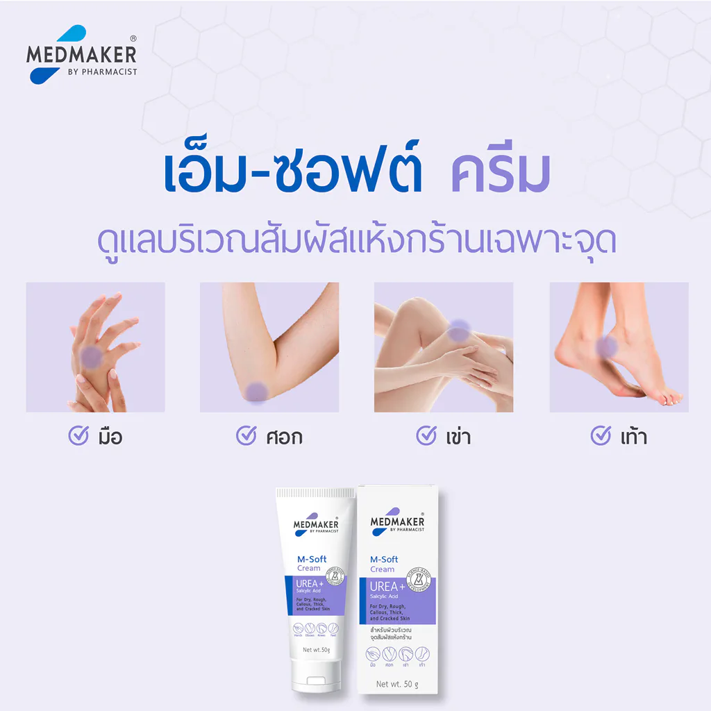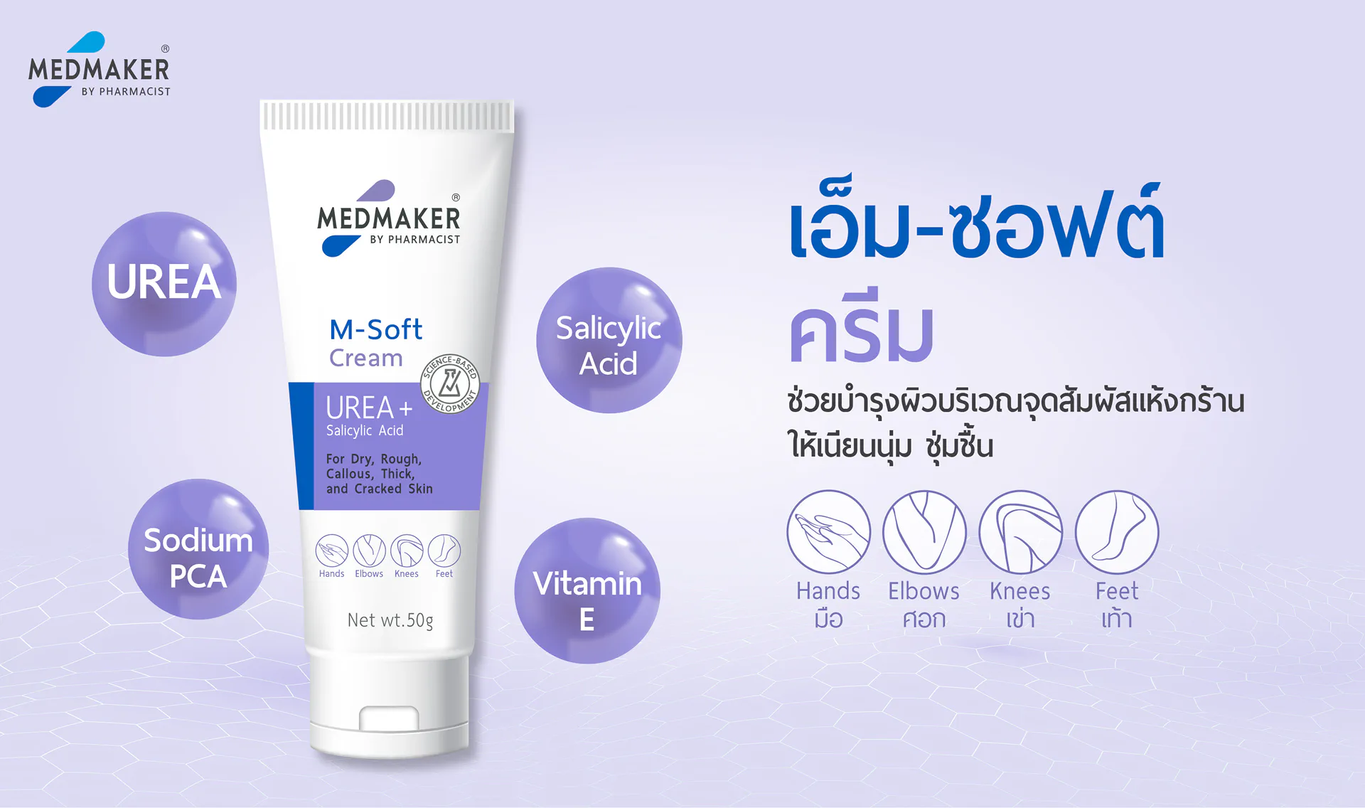 เนิ้อครีมซึมซาบรวดเร็ว ไม่เหนียวเหนอะหนะ ให้ความเนียนนุ่ม ชุ่มชื้น สำหรับผิวที่แห้งกร้าน ด้าน หนา บริเวณมือ ข้อศอก หัวเข่า ตาตุ่ม เท้า