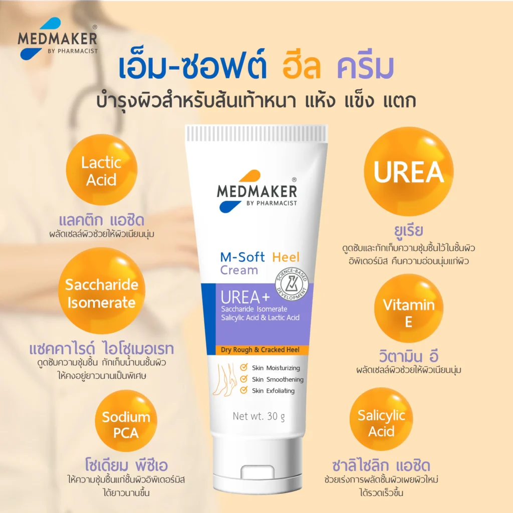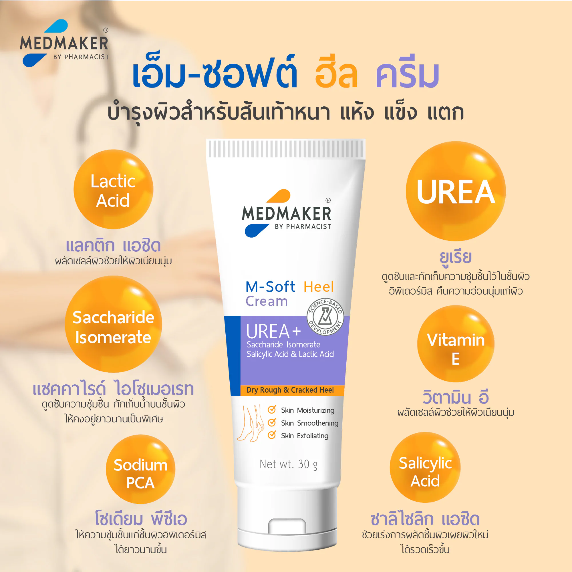 ผลิตภัณฑ์บำรุงผิวบริเวณส้นเท้า เพิ่มความชุ่มชื้นให้ชั้นผิวอิพิเดอร์มิส และช่วยผลัดชั้นผิวบริเวณส้นเท้าที่หนา