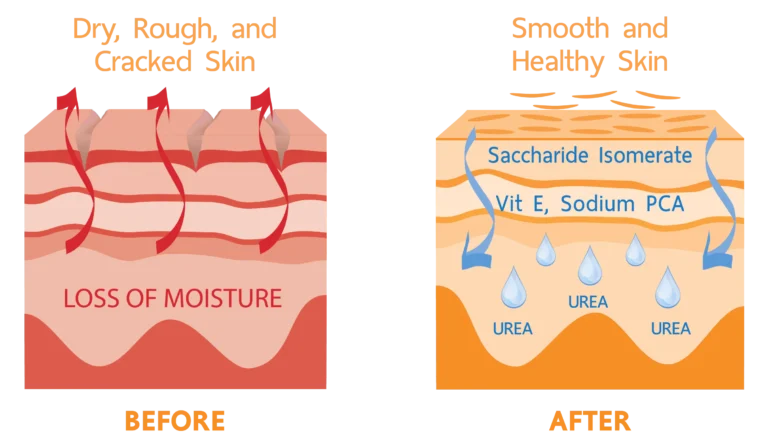 ดูดซับและกักเก็บความชุ่มชื้นไว้ในชั้นผิวอิพิเดอมิส คืนความอ่อนนุ่มแก่ผิว